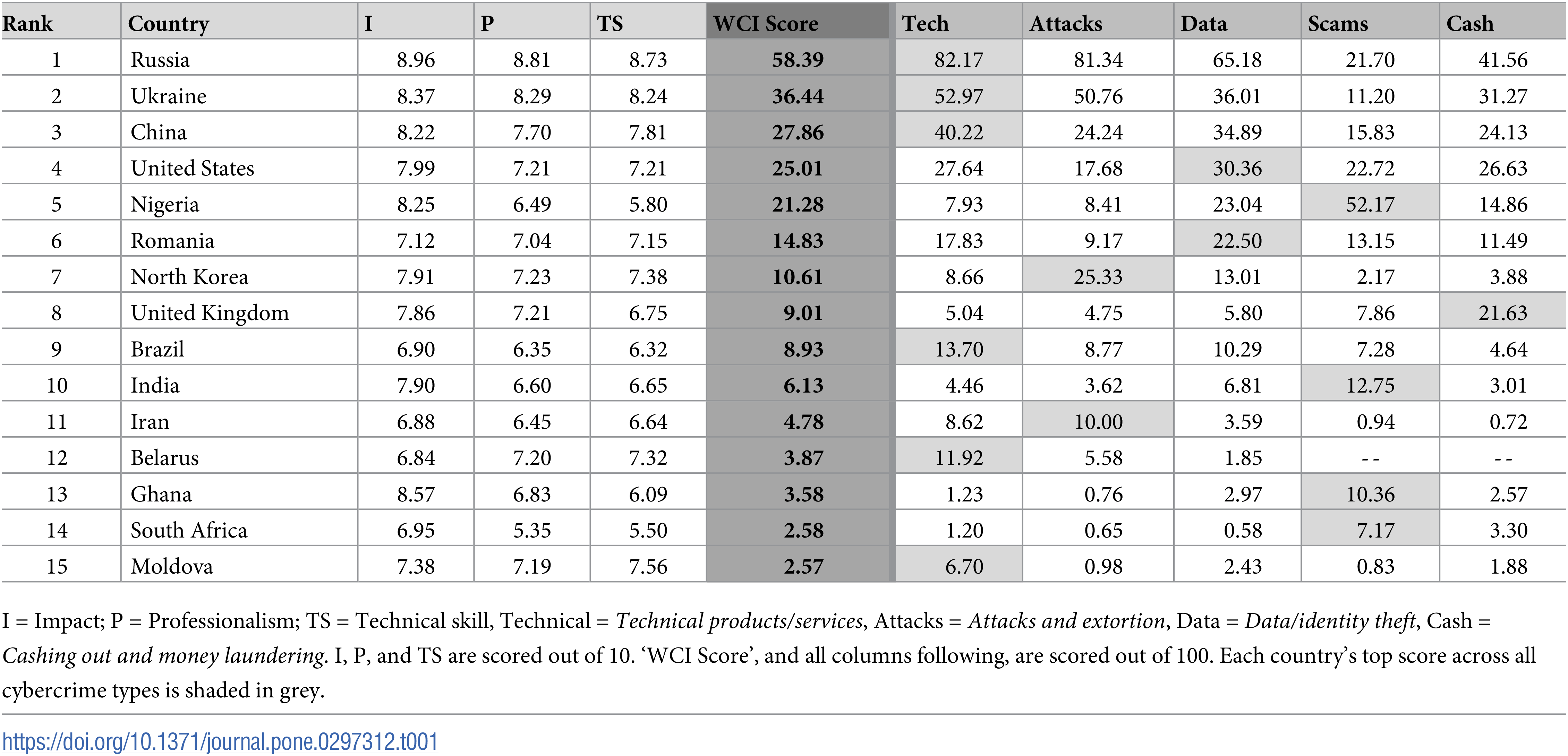 Studiul „World Cybercrime Index”, arată că, un număr relativ mic de țări găzduiește cea mai mare amenințare criminală cibernetică - Rusia se află în fruntea listei, urmată de Ucraina, China, SUA, Nigeria și România.