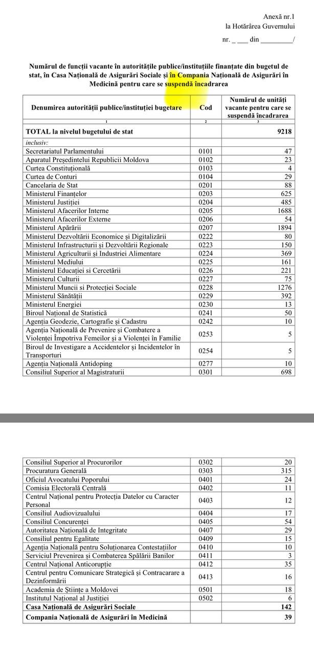 - 9.218 posturi înghețate la nivel central (obligatoriu),