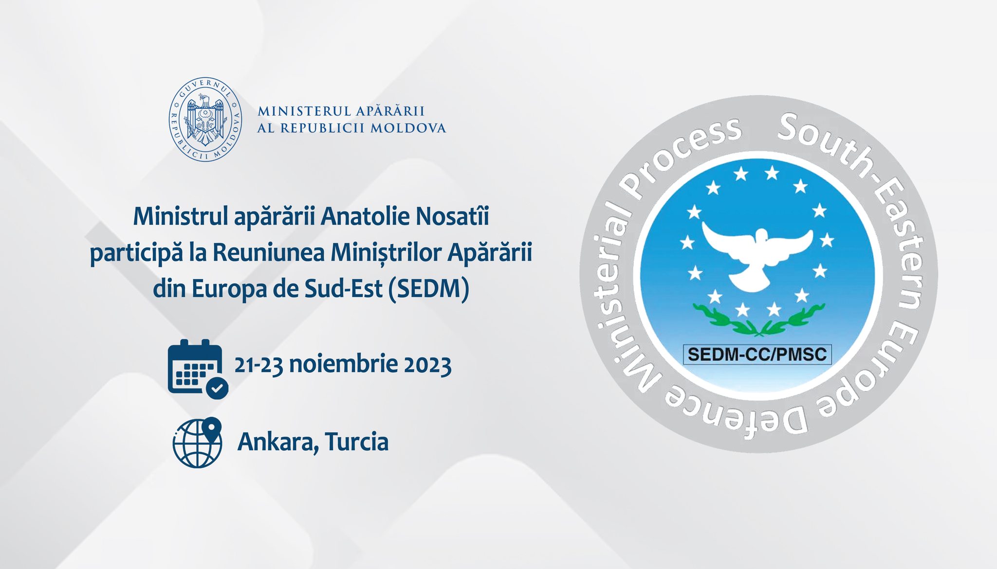 Ministrul apărării Anatolie Nosatîi participă, în perioada 21-23 noiembrie curent, la Reuniunea Miniștrilor Apărării din Europa de Sud-Est (SEDM), care are loc la Ankara, Turcia.