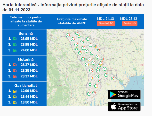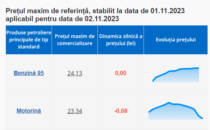 Astfel, un litru de benzină va costa 24,13 lei, iar cel la motorină - 23,34 lei.