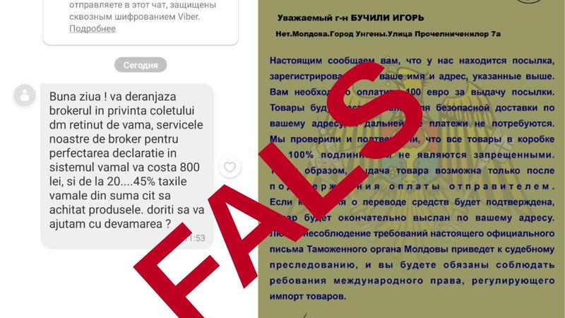 Serviciul Vamal nu transmite astfel de notificări și nu solicită efectuarea plăților prin e-mail, SMS sau aplicații de mesagerie.
