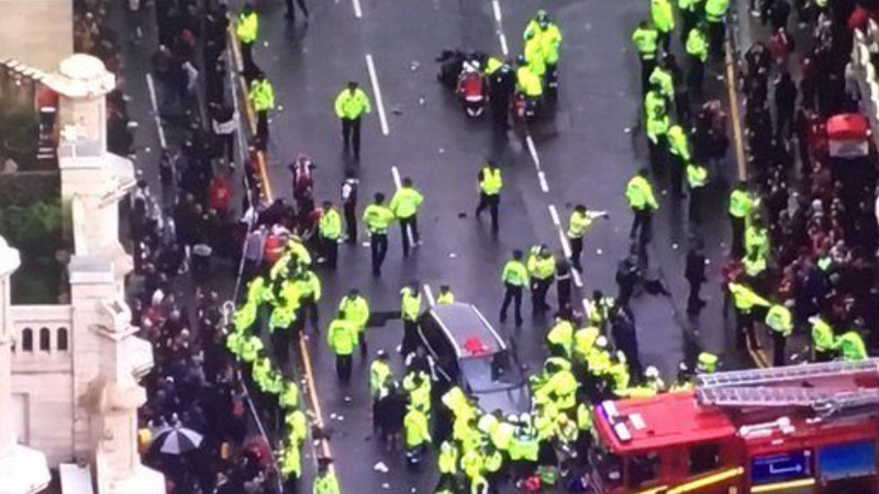 „Ne ocupăm în prezent de rapoartele unei coliziuni rutiere în centrul oraşului Liverpool. Am fost contactaţi la puţin după ora 18:00 astăzi, luni 26 mai, în urma rapoartelor că o maşină a fost în coliziune cu mai mulţi pietoni pe Water Street. Maşina s-a oprit la faţa locului şi un bărbat a fost reţinut. Serviciile de urgenţă sunt în prezent la faţa locului. Vom emite mai multe actualizări pe măsură ce le vom avea”, a declarat un purtător de cuvânt al poliţiei.