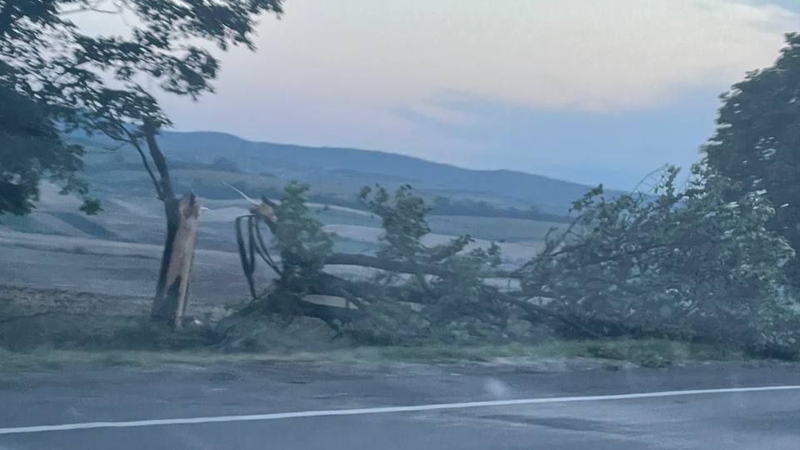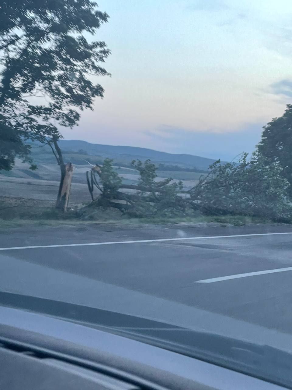 Imagini video în care se observă crengi împrăștiate pe marginea drumului și copaci doborâți, au fost publicate de internauți pe rețele.