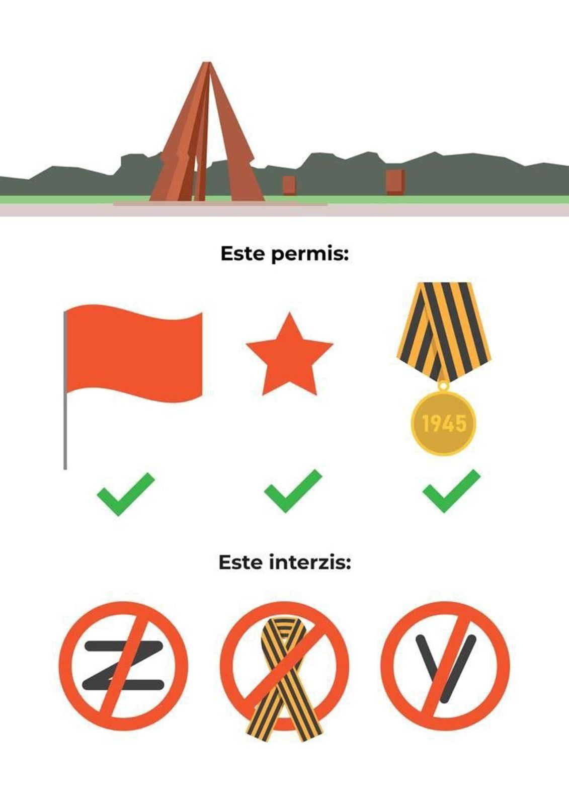 Persoanele care vor afișa în public simbolurile interzise, cum ar fi panglica negru-oranj „Sfântul Gheorghe” sau literele „Z” și „V” – asociate cu agresiunea Rusiei asupra Ucrainei – în cadrul evenimentelor de pe 9 mai, riscă amenzi