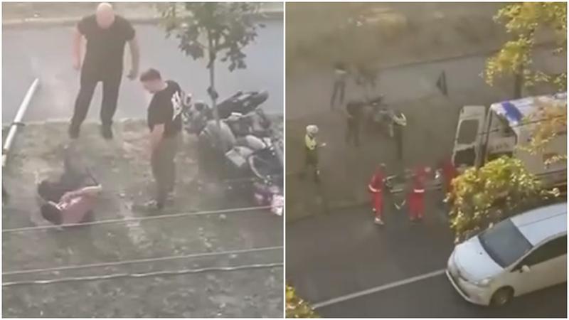 Din alte imagini video se vede o ambulanță la locul accidentului. Motociclistul este încărcat pe targă și dus de urgență la spital.