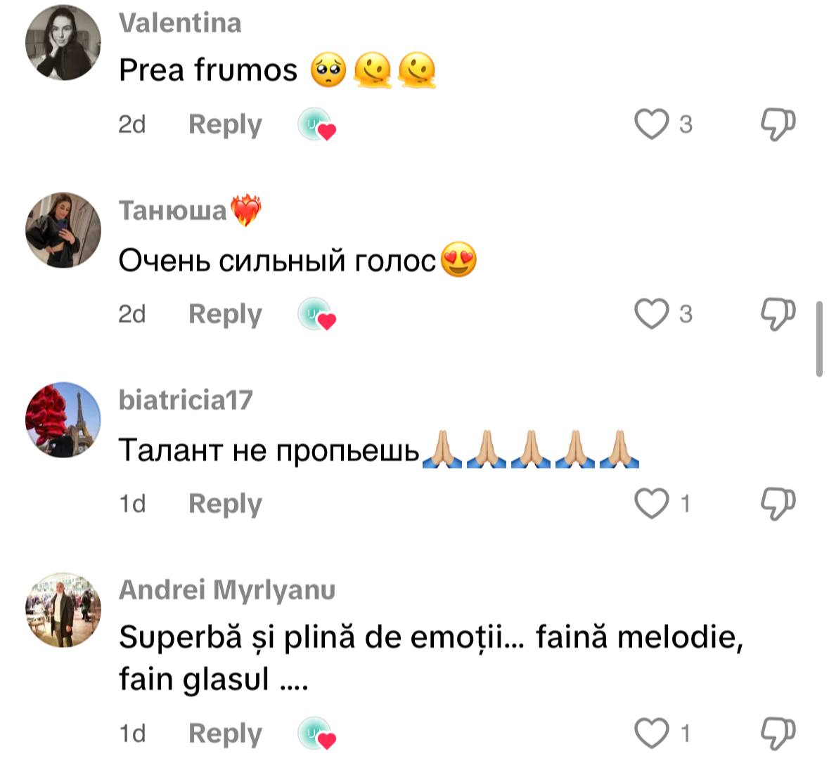„Superbă și plină de emoții…faină melodie…fain glasul”, au scris fanii.