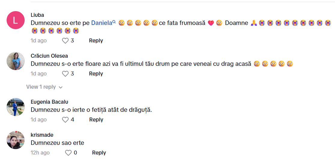 Mesaje sfâșietoare au fost publicate și pe rețelele sociale, unde prietenii au descris-o drept un suflet blând, mereu zâmbitor, iubită de toți cei care au cunoscut-o.