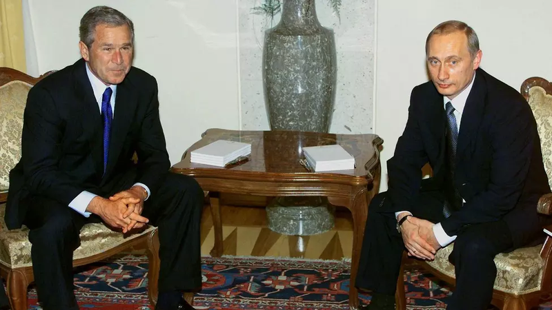 Încă de la prima întrevedere dintre Bush Jr. și Putin, organizată pe 16 iunie 2001, la Castelul Brdo din Slovenia, fostul agent KGB și șef al spionajului rusesc a deplâns destrămarea Uniunii Sovietice, contrazicând astfel poziția sa publică oarecum prooccidentală afișată în primele luni de mandat la Kremlin.