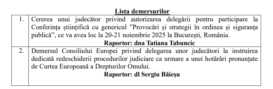 update Delegarea judecătorilor pentru participare la seminare, conferințe și cursuri de instruire, aprobată de plen.
