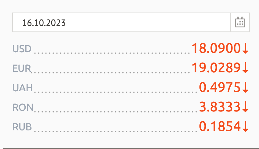 Euro și dolarul scad brusc și simțitor, la început de săptămână, potrivit cursului afișat de Banca Națională a Moldovei.