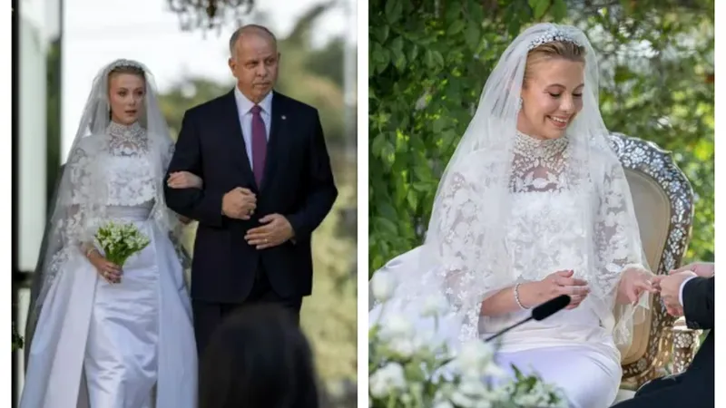 Nepoata regelui și-a combinat rochia de mireasă cu aceeași tiară cu diamante pe care a purtat-o și sora ei mai mare, Prințesa Ayah, în ziua nunții ei din 2014. Este vorba despre o diademă cu flori de diamant care aparține colecției personale a mamei lor, Alia Tabbaa, fiica fondatorului Royal Jordanian Airline, Sayyid Tawfik Al-Tabbaa.