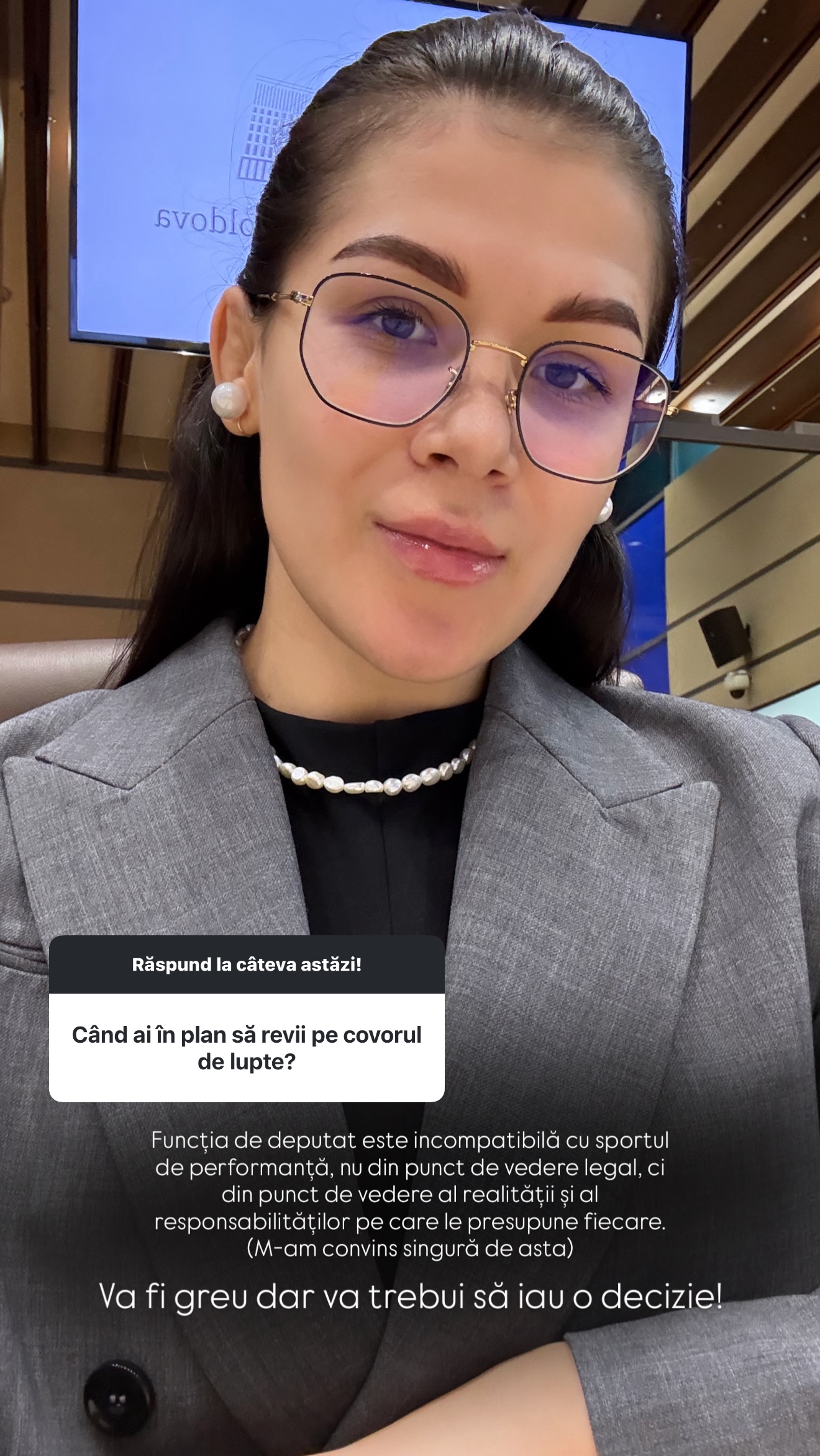 „Funcția de deputat este incompatibilă cu sportul de performanță, nu din punct de vedere legal, ci din punct de vedere al realității și al responsabilităților pe care le presupune fiecare. M-am convins singură de asta. Va fi greu, dar va trebui să iau o decizie”, a menționat Anastasia Nichita.