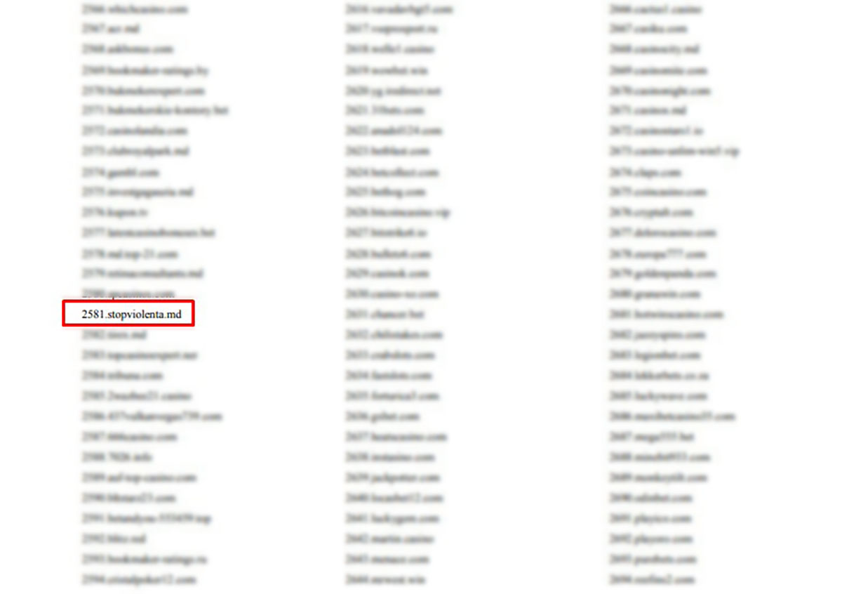 Reporterii UNIMEDIA au observat că în lista oficială apare și stopviolenta.md, un site cunoscut pentru activitatea sa în prevenirea violenței în familie și protecția victimelor.
