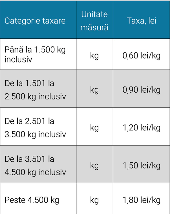 Vezi în tabelul de mai jos cum e aplicată nouă taxă per kilogram pentru maşinile electrice în Moldova, de la 1 ianuarie 2026: