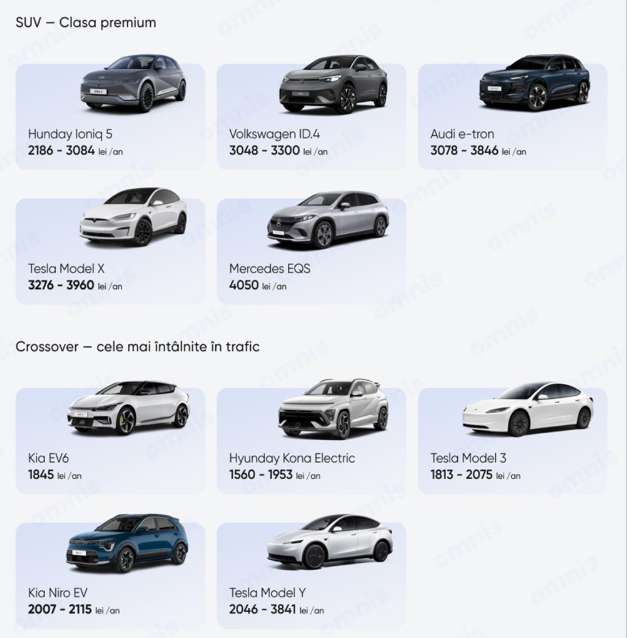 Totuşi, taxa per kilogram, aplicată unor maşini electrice simţitor de grele şi raportată la masa lor totală, se lasă cu o taxă de drum anual sesizabilă, mai ales pe fundalul scutirii totale de până acum. Cei de la Omnis, o aplicaţie moldovenească de asigurări şi plată directă a taxei de drum, au făcut şi un calcul la cât ajunge acum taxa de drum pentru câteva din cele mai populare şi reprezentative modele electrice, pe care le includem mai jos.
