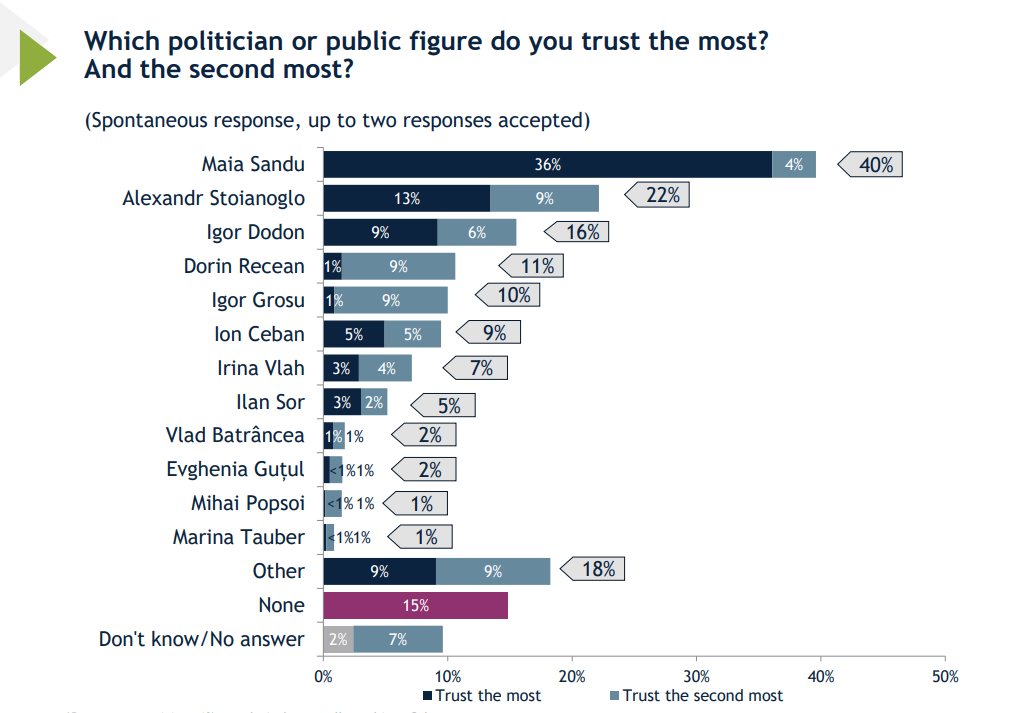 Astfel, întrebați în cine dintre politicieni sau persoanele publice au cea mai mare încredere sau încredere, respondenții au răspuns astfel: