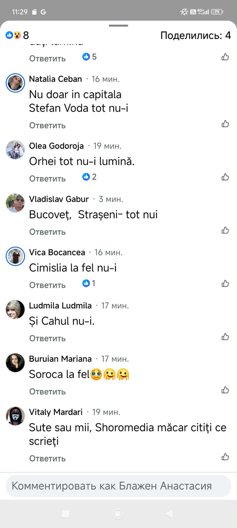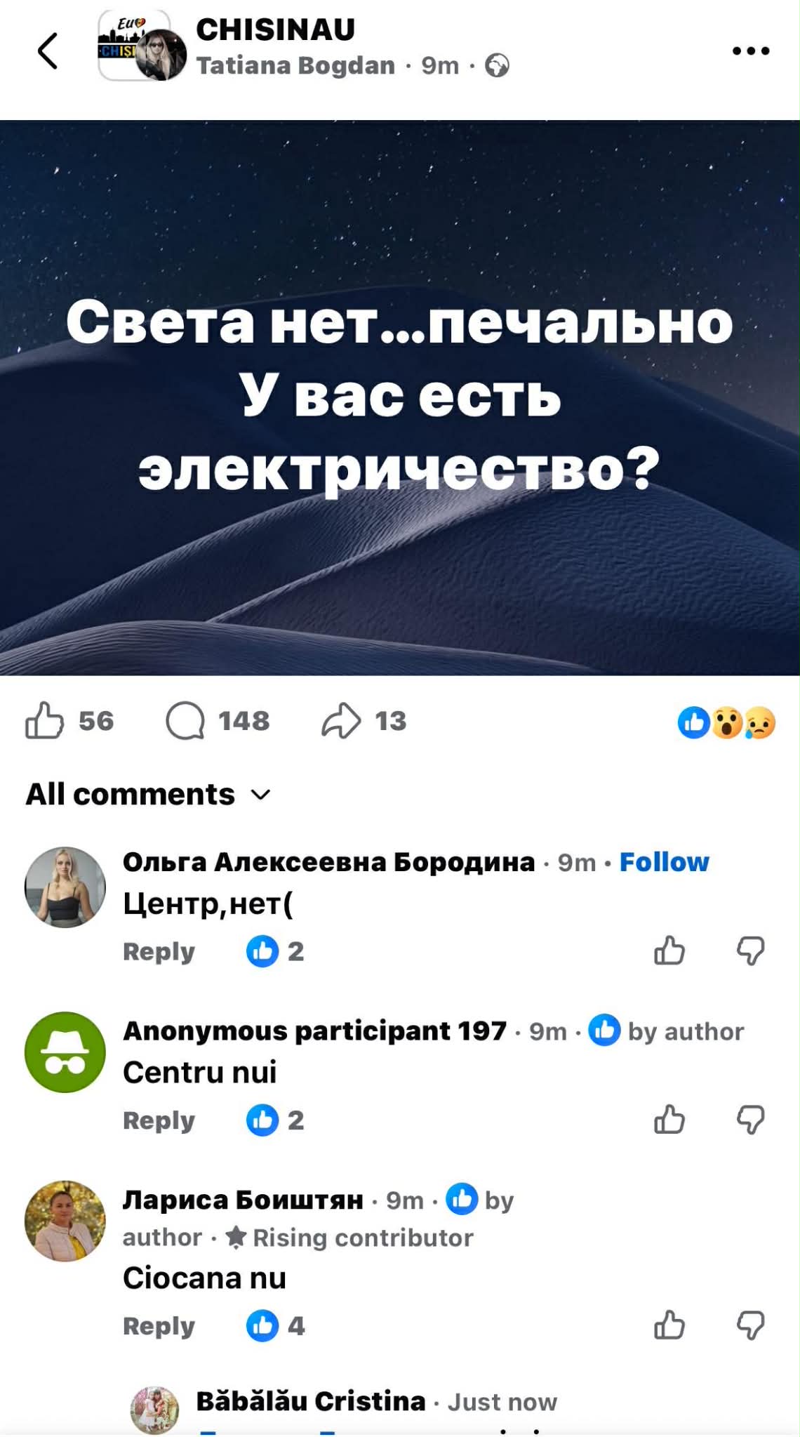 Potrivit informațiilor mai mulți locuitori din toată Modlova au rămas fără energie electrică.