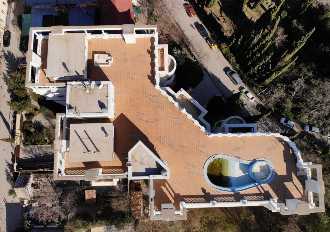 Apartamentul este situat la etajul 5 al clădirii, iar balconul are vedere la Marea Neagră şi la Palatul Livadia, care a fost cândva casa de vacanţă a ultimului ţar rus Nicolae al II-lea, împuşcat de bolşevici în 1918.