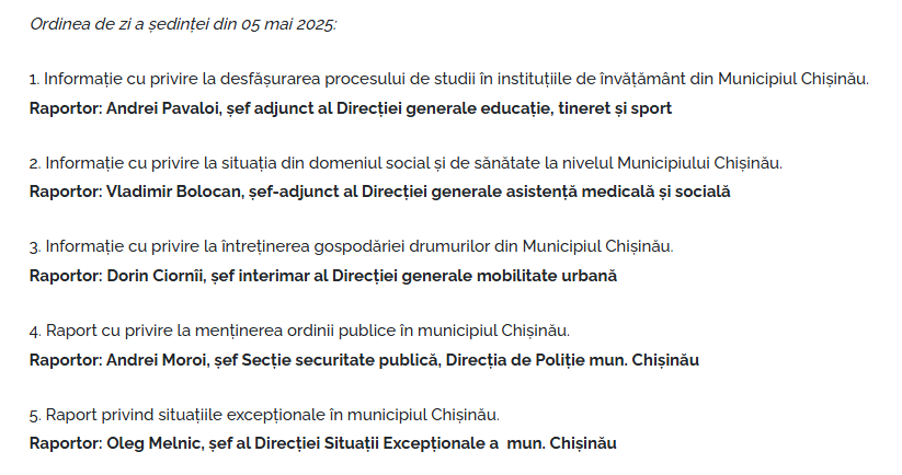 11:30 Dorin Ciornîi, șef interimar al Direcției generale mobilitate urbană prezintă informația cu privire la întreținerea gospodăriei drumurilor din Municipiul Chișinău.