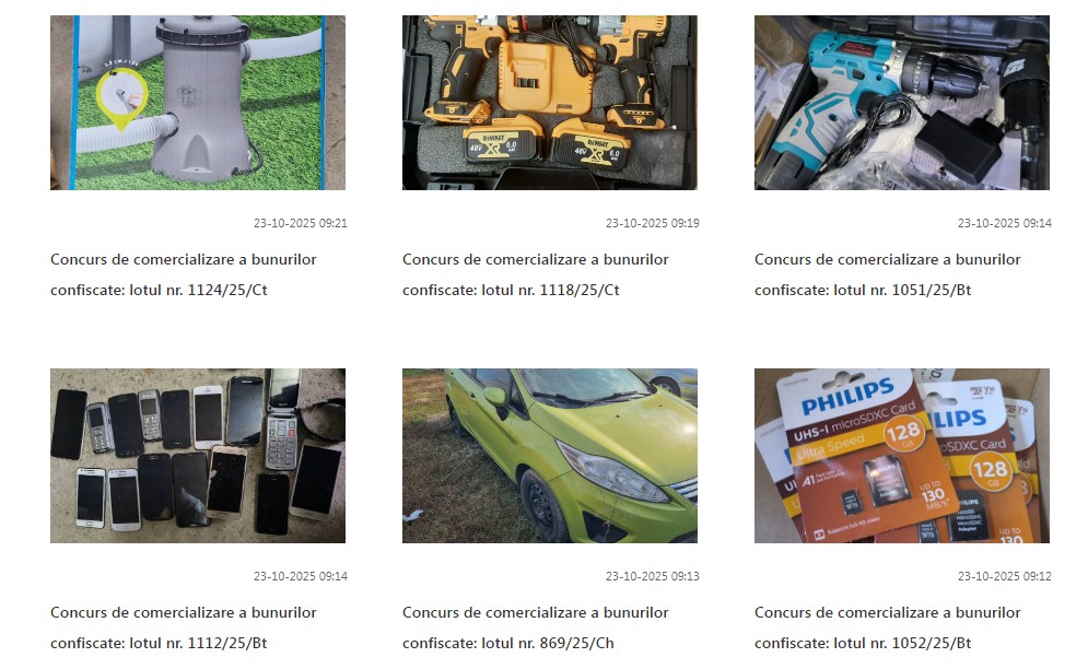 Lista actualizată a bunurilor propuse spre comercializare, cu denumiri, caracteristici, cantități, prețuri și fotografii, poate fi consultată pe pagina oficială „Bunuri confiscate” de pe site-ul SFS.
