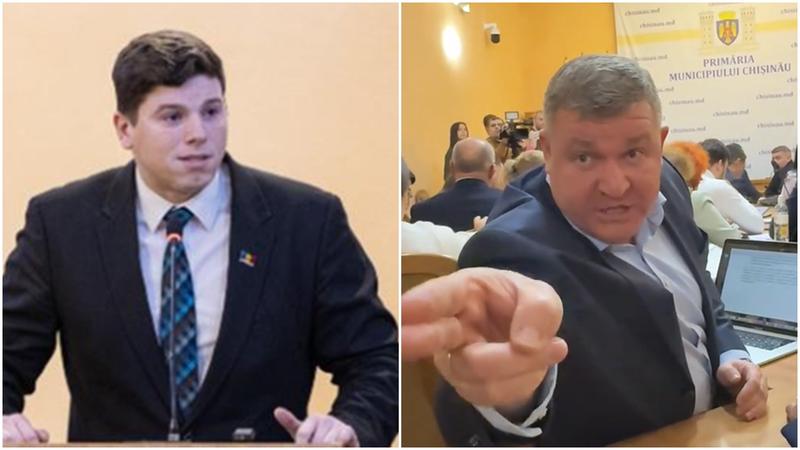 „Iată acesta, Ion de la PAS, nu vrea ca profesorii din mun. Chișinău să primească salarii”, a strigat Denis Șova, consilier din Partidul Nostru, arătând cu degetul spre Ion Melnic.
