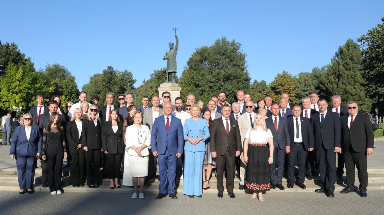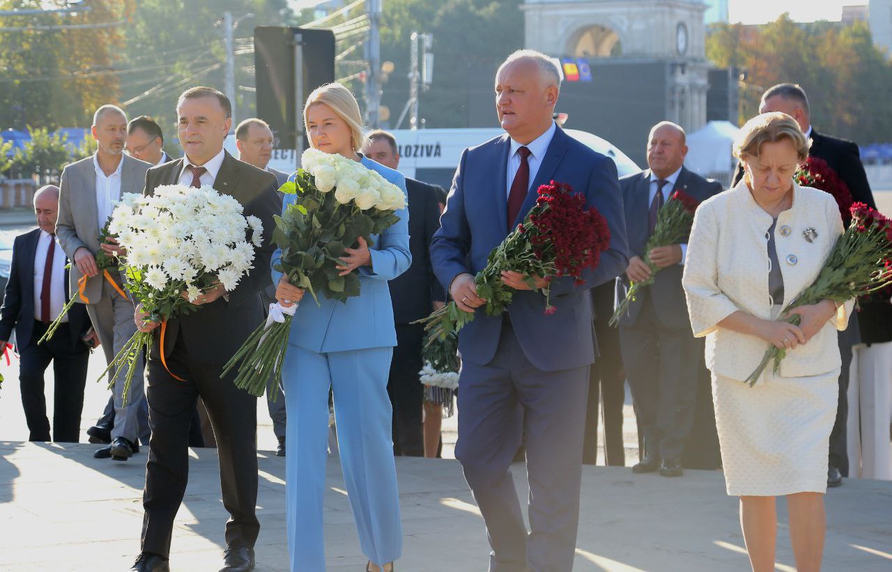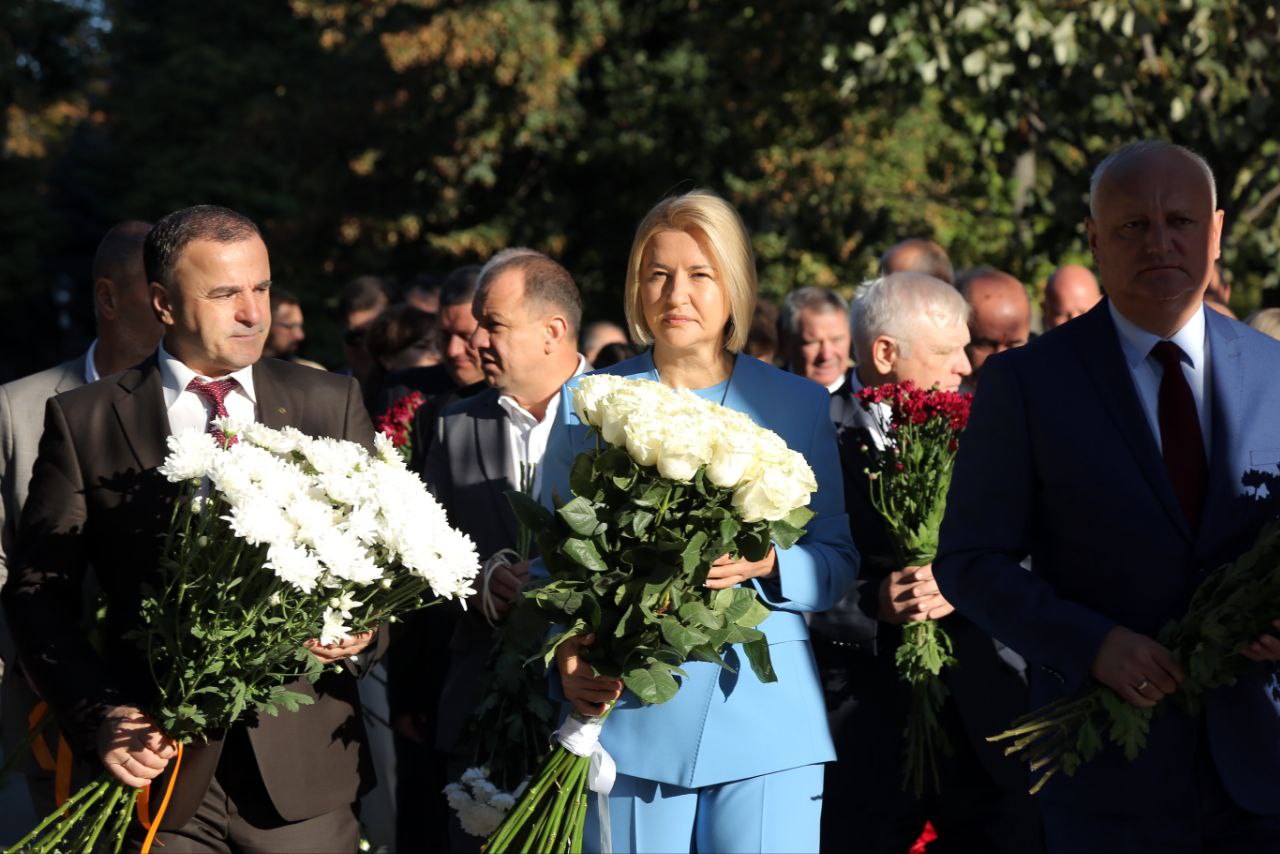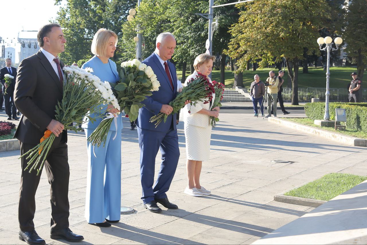Președinta Maia Sandu, prim-ministrul Dorin Recean și președintele Parlamentului, Igor Grosu, însoțiți de miniștri și deputați au depus flori la monumentul „Maica Îndurerată” de la Complexul Memorial „Eternitate”, apoi au ținut un minut de reculere pe eroii căzuți.