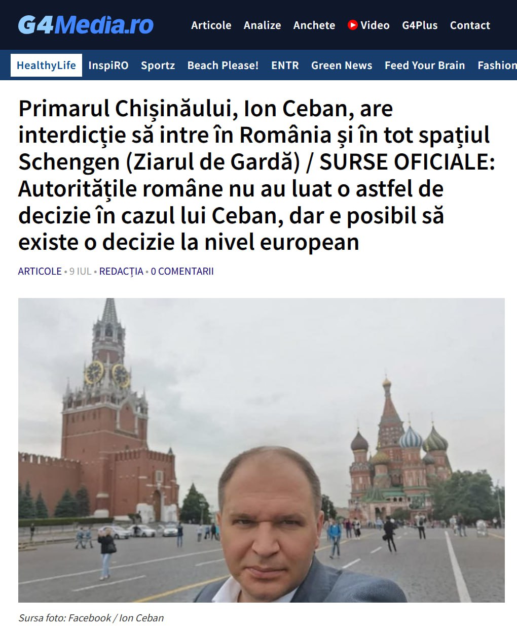Un ziar de la Chișinău anunță, citând surse de peste Prut, că edilul capitalei, Ion Ceban, ar fi fost declarat persona non-grata în România, dar și în spațiul Schengen pentru o perioadă de 5 ani. Nicio instituție oficială nu a confirmat sau informat aceste date, iar primarul capitalei nu a comentat informațiile până la acest moment.