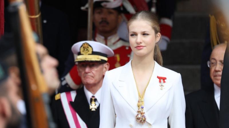 Însoţită de tatăl ei, de mama sa - regina Letizia - şi de sora ei mai mică, infanta Sofia, Leonor de Bourbon a depus jurământul de credinţă în faţa celor două camere ale Parlamentului Spaniei reunite într-o sesiune extraordinară, o ceremonie prin care au trecut atât bunicul ei Juan Carlos I în 1969, în timpul dictaturii franchiste, cât şi tatăl ei, în 1986, în timpul regimului democratic.