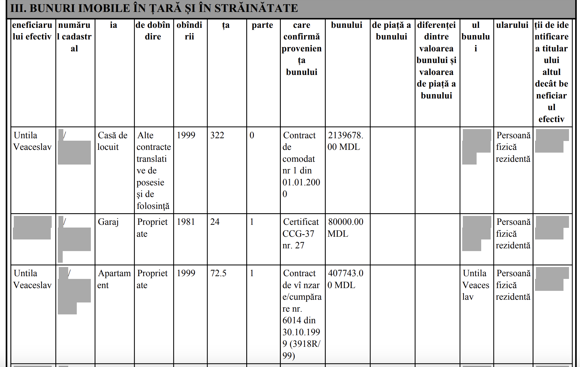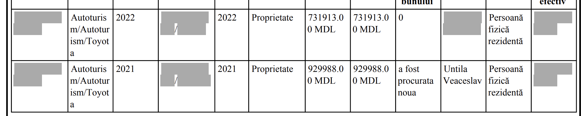 La fel, Veaceslav Untilă a declarat 11 conturi bancare în lei și valută de peste 1,5 milioane de lei și două automobile Toyota din anul 2021 și 2022, care valorează 939 mii lei și respectiv, 731 mii lei.
