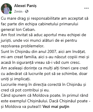 Când spunem că Moldova poate, în primul rând este exemplul Chișinăului. Dacă Chișinăul poate - și Moldova va putea”, a scris Paniș pe rețele.
