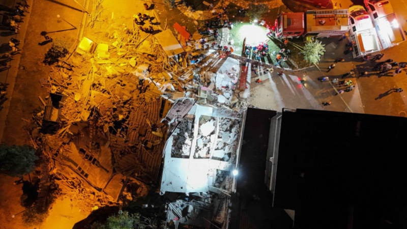 O bătrână a murit la scurt timp după ce a fost scoasă în viaţă dintre dărâmăturile unei clădiri prăbuşite în Sindirgi, a declarat ministrul de interne Ali Yerlikaya. Alte patru persoane au fost salvate din clădire.
