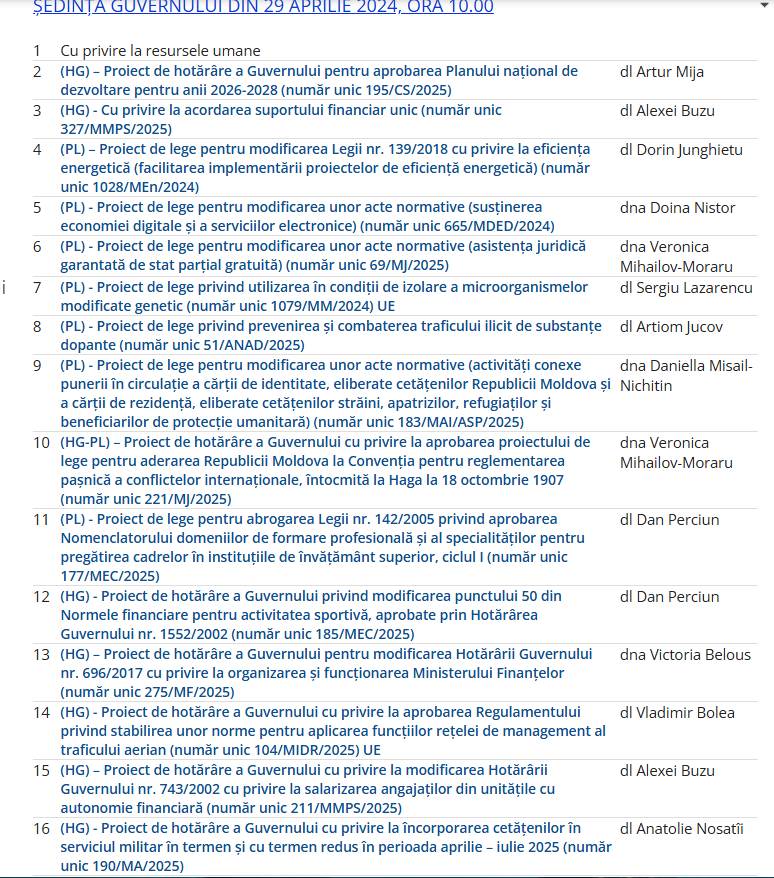 10:23 Proiectul de hotărâre a Guvernului cu privire la încorporarea cetățenilor în serviciul militar în termen și cu termen redus în perioada aprilie – iulie 2025 (număr unic 190/MA/2025), apronat de miniștri.