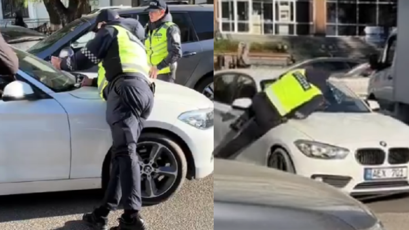 Noi imagini video cu polițistul luat pe capota unui BMW au fost postate de internauți pe rețele. În imagini este surprins momentul în care șoferul refuză să prezinte actele polițistului și insistă să fie lăsat să plece pe motiv că se grabește.