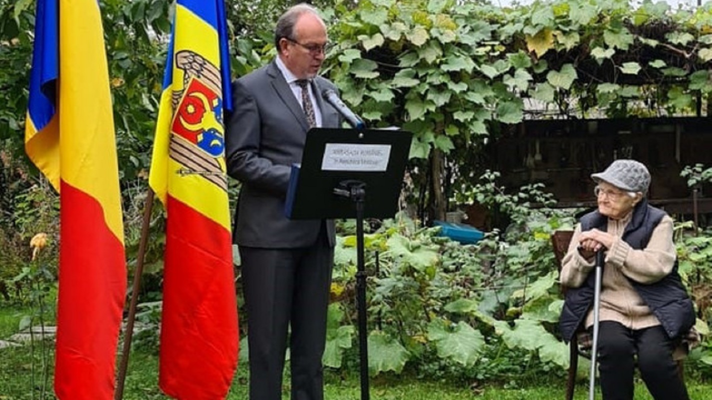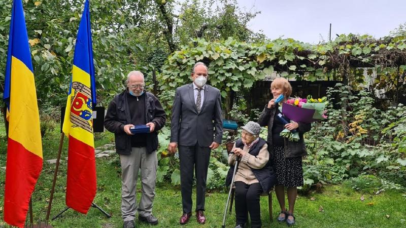 Pictorița a primit distincția de ziua ei, în curtea casei sale din centrul istoric al Chișinăului. Daniel Ioniță a felicitat-o cu ocazia aniversării frumoasei sale vârste și a evocat pe scurt cariera și personalitatea venerabilei artiste.