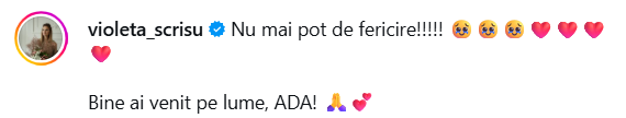 Printre primii care au reacționat la marea veste s-au numărat, bineînțeles, nașii de cununie. Violeta Scrișu, antrenoare de dicție și jurnalistă, nu și-a putut stăpâni entuziasmul: „Nu mai pot de fericire!!! Bine ai venit pe lume, ADA!”, a comentat aceasta, fiind vizibil emoționată de noul rol de „nașă de botez” care se prefigurează.