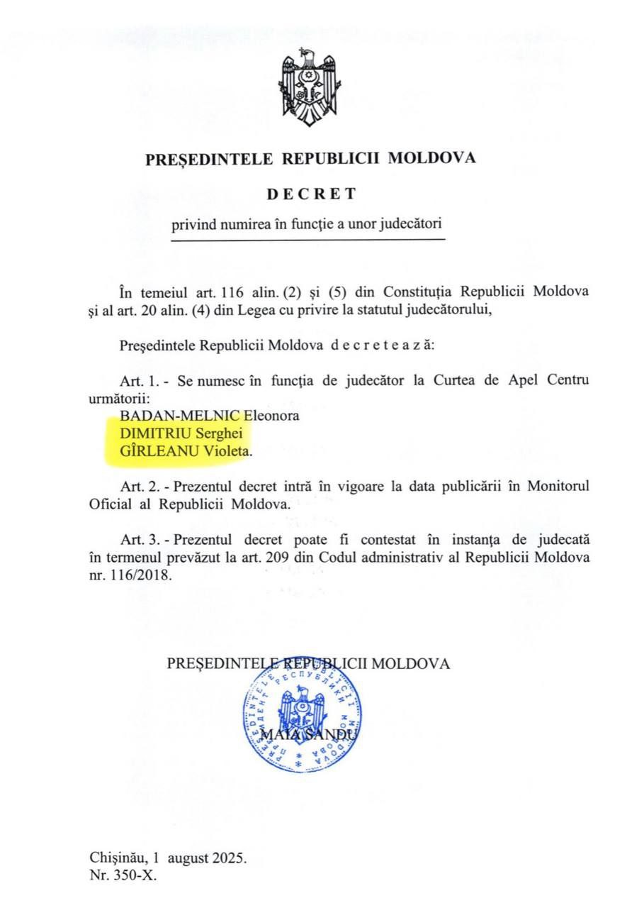 La începutul lunii iulie, trei judecători de la Judecătoria Chișinău: Serghei Dimitriu, Violeta Gîrleanu și Eleonora Badan-Melnic, au promovat evaluarea externă în cadrul procesului de vetting, Consiliul Superior al Magistraturii urmând să-i propună pentru numire la Curtea de Apel Centru. Decizia a fost luată în cadrul ședinței plenare a CSM din 1 iulie, în baza rapoartelor Comisiei Vetting.
