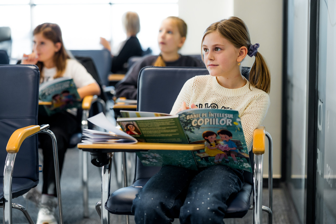 Programul „Banii pe înțelesul copiilor” se desfășoară într-o ambianță plăcută, la oficiul central Double Case de pe str. Mihai Viteazu, 4.