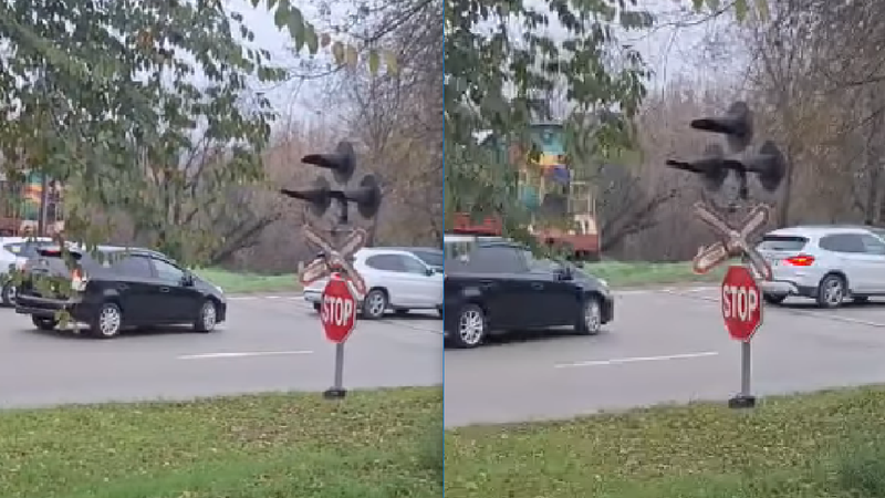 Șoferul BMW-ului a ignorat semnalele de avertizare și s-a angajat pe trecerea de cale ferată. Din fericire, mecanicul trenului a reacționat rapid și a oprit locomotiva, evitând coliziunea.