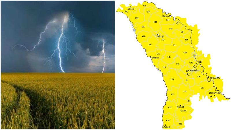Astfel, se prevăd descărcări electrice cu ploi de scurtă durată, izolat averse puternice (în intervale scurte de timp sau prin acumulare se vor înregistra cantități de apă de 15-45 l/m2) și intensificări ale vântului în rafale de până la 15-20 m/s. În funcție de evoluția și intensitatea fenomenului prognozat, prezentul mesaj și harta vor fi actualizate: www.meteo.md
