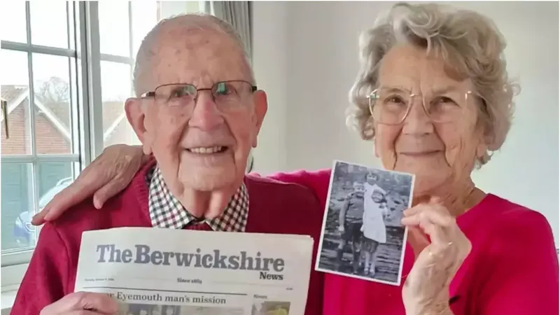 Jim Dougal și Betty Davidson mergeau împreună la școală, mână în mână, în Eyemouth, în Scottish Borders, în anii 1930. Au pierdut legătura după ce familia lui Jim s-a mutat în jurul anului 1939, dar eforturile fiului său, Alistair, de a da de urma tuturor membrilor unei fotografii de clasă din 1936 i-au adus din nou împreună, relatează BBC.