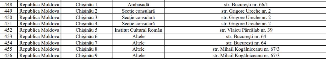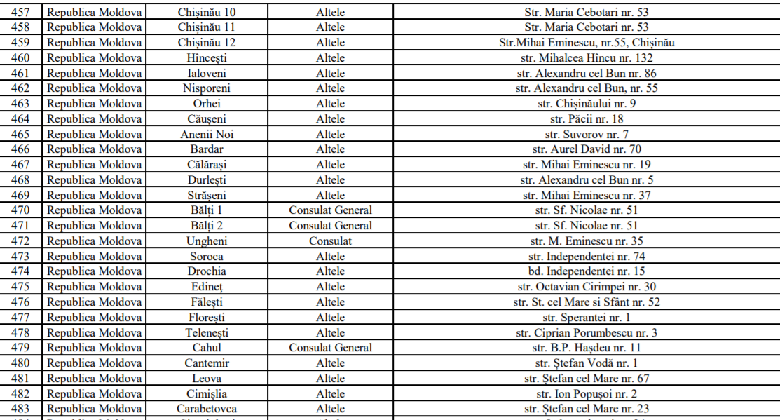 lista secțiilor de votare / Sursa:mae.ro