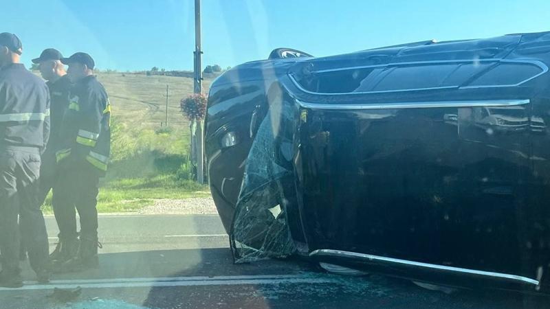 În urma impactului, BMW X3 s-a răsturnat pe partea carosabilă.