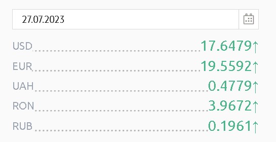 Euro și dolarul, în creștere. Banca Națională a stabilit pentru astăzi, 27 iulie, un curs de 17, 64 lei pentru un dolar, iar pentru un euro - 19,55.