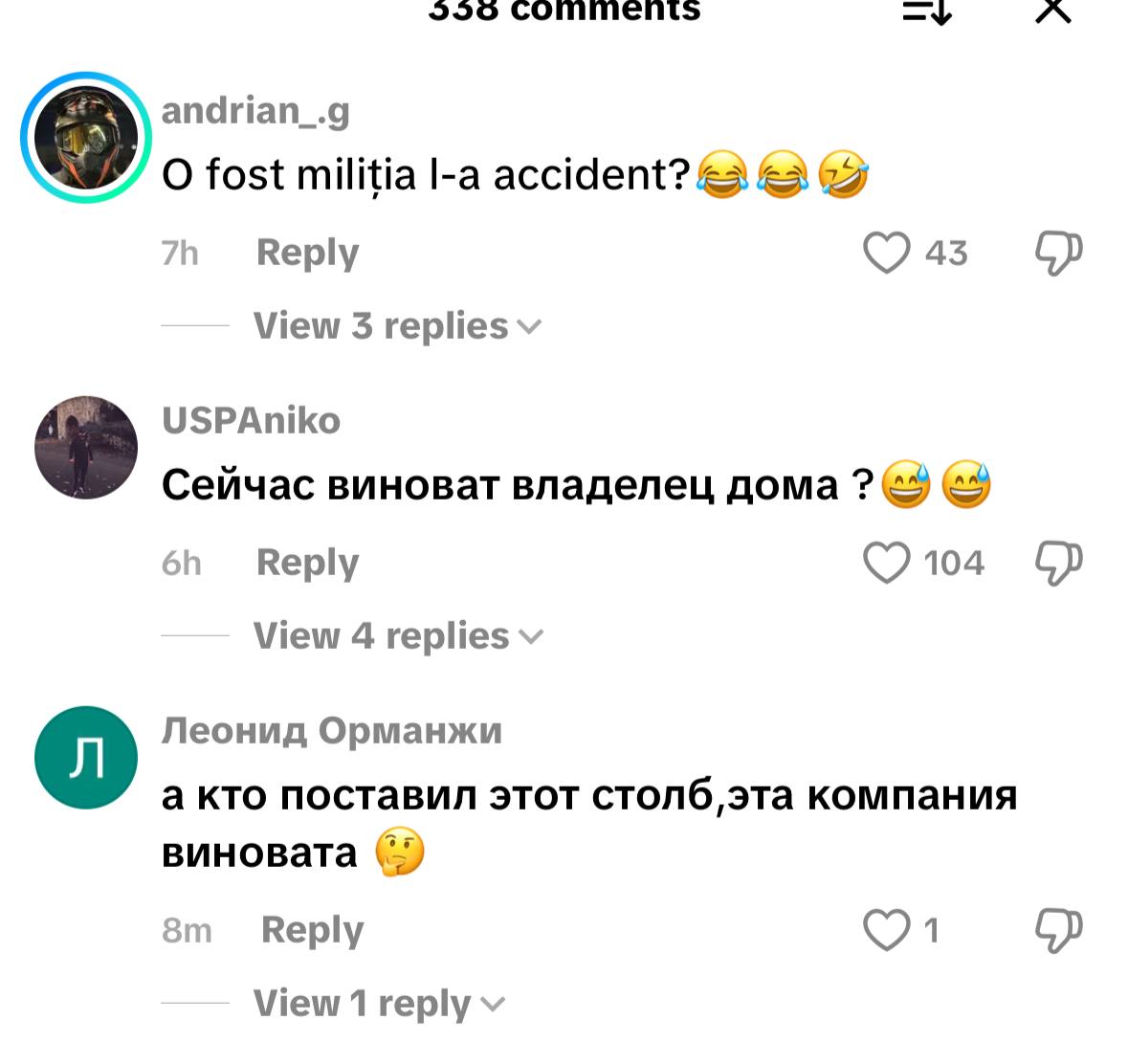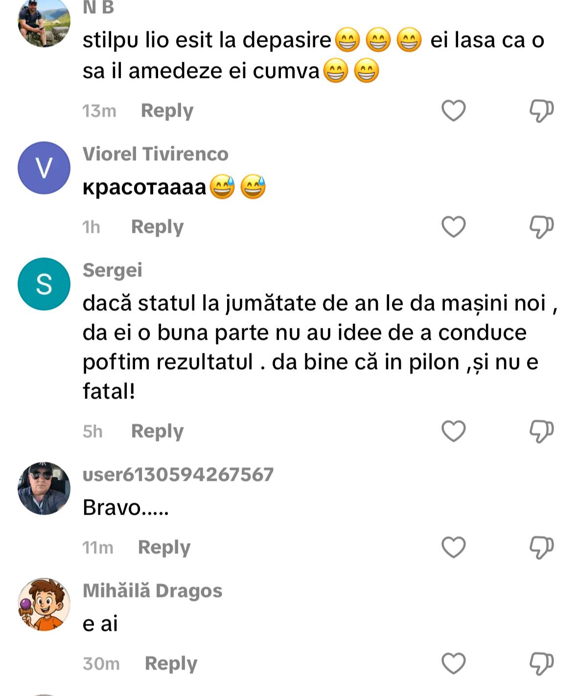 „Stâlpul e de vină, că a ieșit la depășire și a frânat pe loc.”