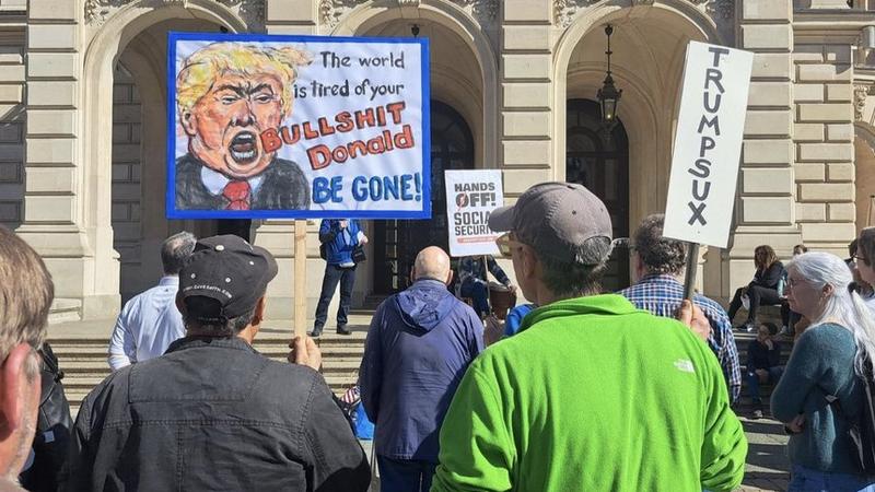 La Berlin, manifestanţii care au protestat în faţa unui showroom Tesla au purtat pancarte prin care le cereau compatrioţilor americani care trăiesc în Germania să protesteze pentru „încetarea haosului” de acasă.