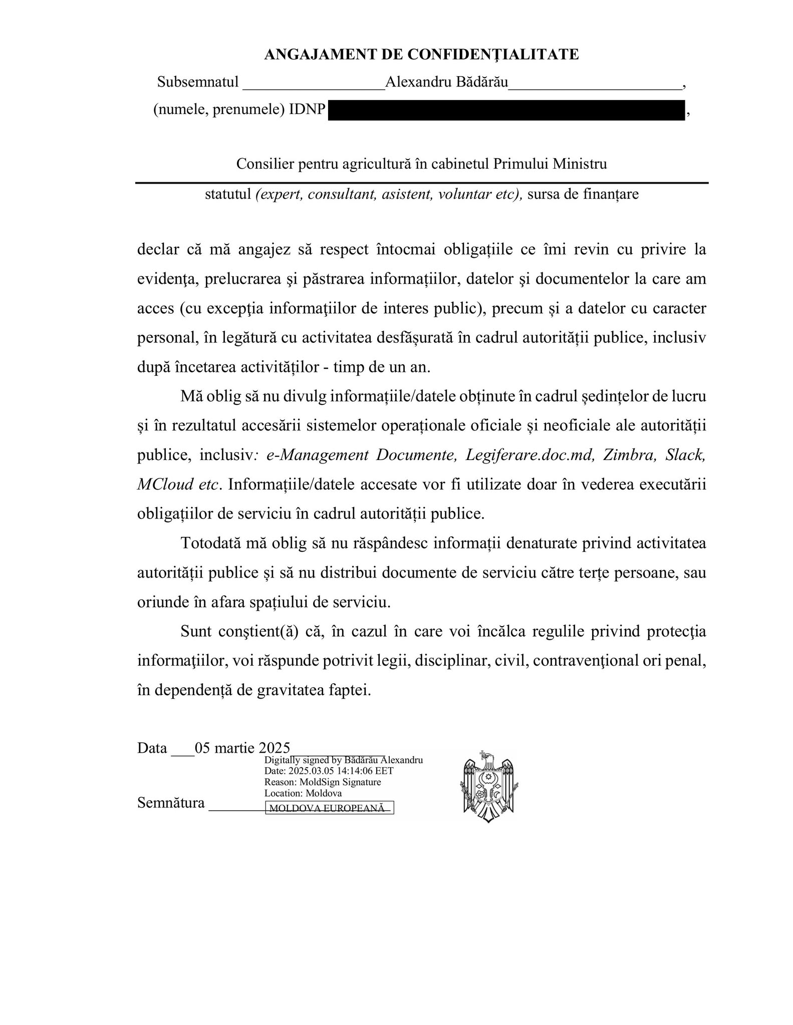 Consider regretabil și profund îngrijorător faptul că, în ciuda declarațiilor publice despre deschidere și dialog, în realitate asistăm la o izolare deliberată a vocii fermierilor și producătorilor agricoli din procesele decizionale strategice ale țării, într-un moment când soarta întregului sector depinde de deciziile luate acum în contextul integrării europene. Este inacceptabil ca unul dintre pilonii economiei naționale să fie tratat cu atâta indiferență și lipsă de respect instituțional, iar expertiza și preocupările a mii de agricultori să fie ignorate sistematic în favoarea unor decizii luate în spatele ușilor închise, fără consultarea celor direct afectați. Această abordare subminează principiile democrației participative, dar mai ales pune în pericol viitorul antreprenorilor locali din sectorul agrar”, se arată în cererea de demisie a lui Alexandru Bădărău.