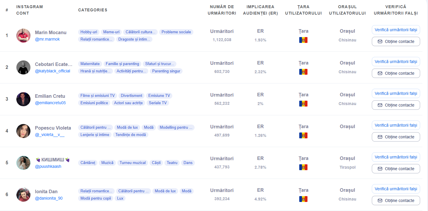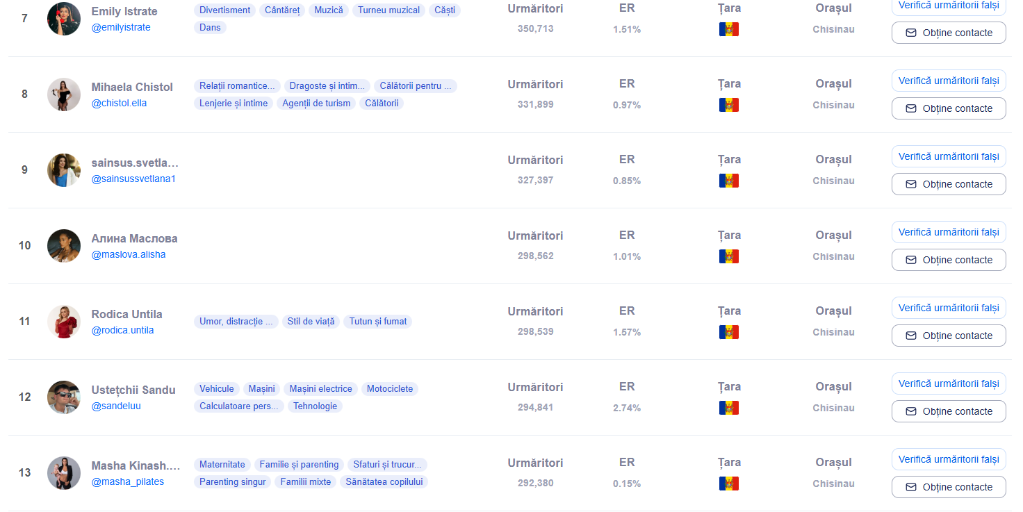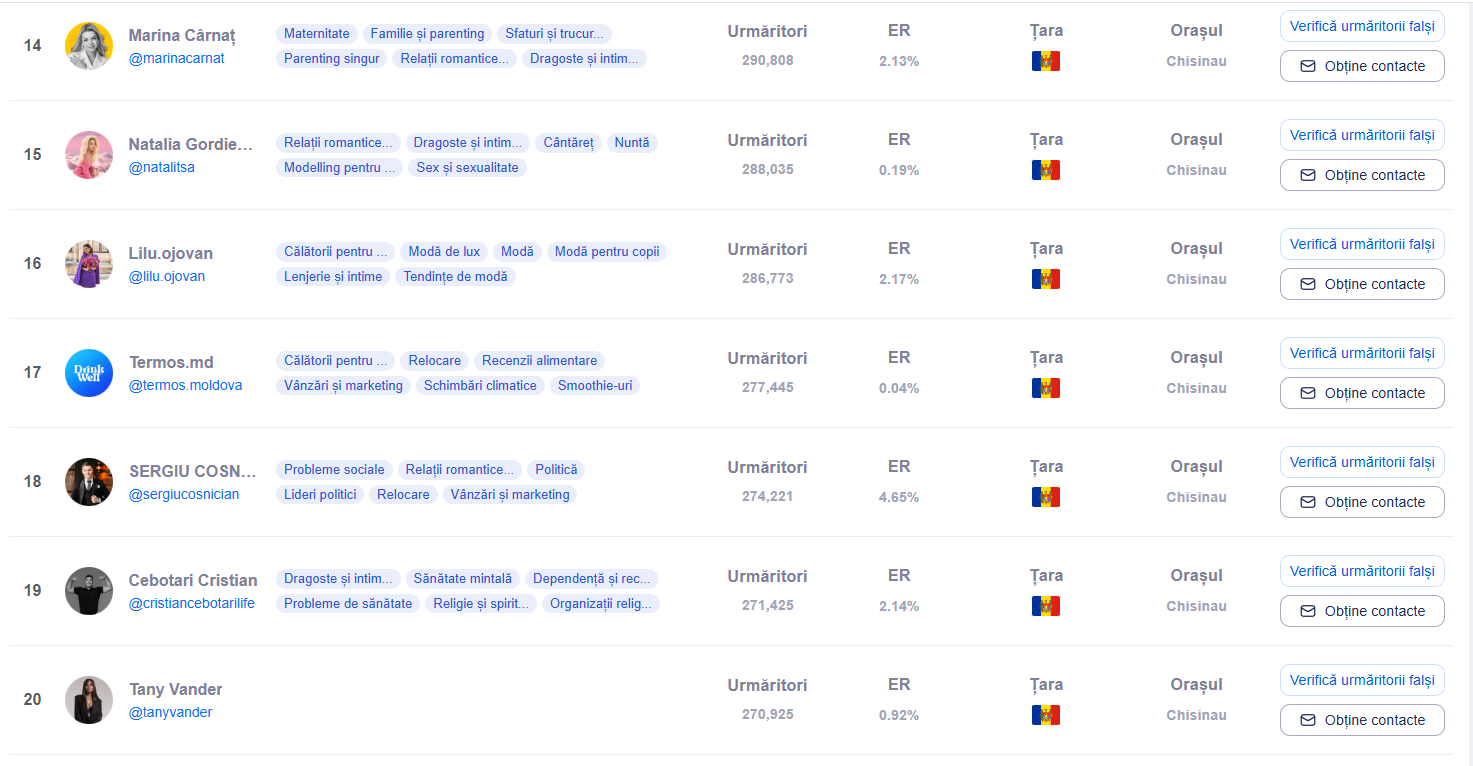 De asemenea, si președinta Maia Sandu se află pe poziția 27 în clasament. Pagina de instagram a șefei statului este urmărită de 251,417 de fani.