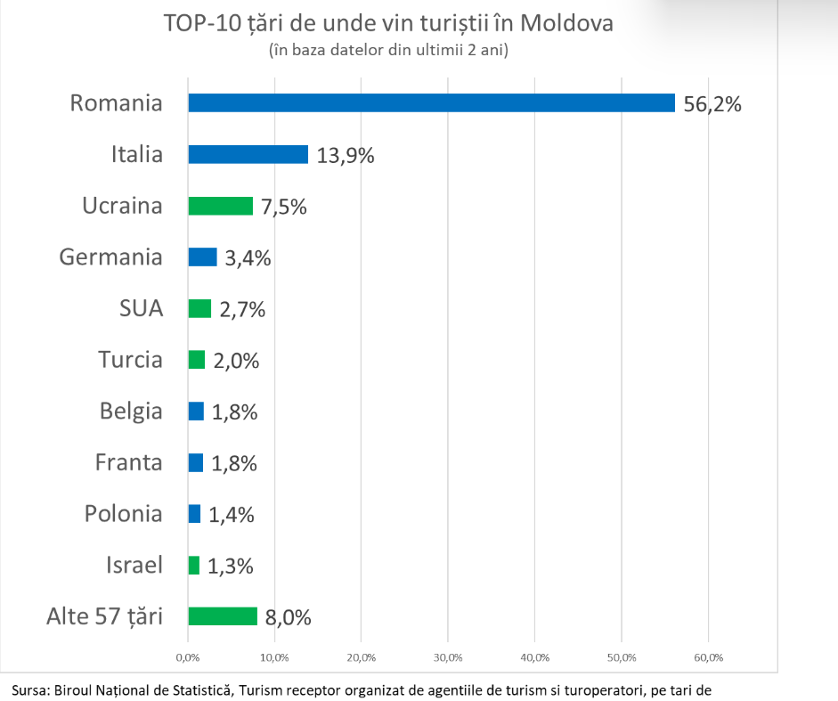 În acest an, aproximativ 290.000 de turiști din alte țări vor vizita Republica Moldova. „O cifră frumoasă, care arată o creștere sănătoasă a ramurii”, a comentat analistul economic Veaceslav Ioniță, care a analizat clasamentul celor 10 state din care vin cele mai multe persoane în vacanță în Moldova, realizat de Biroul Național de Statistică.