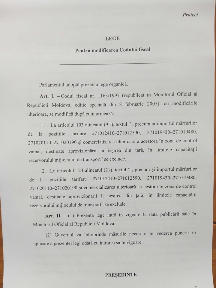 La două săptămâni după ce şi-a pus semnătura peste legalizarea business-ului cu produse petroliere în regim duty-free, Igor Dodon le spunea jurnaliştilor că acesta „e un subiect foarte suspect pentru că ar da posibilitate de contrabandă. Eu proiectul încă nu l-am văzut.
