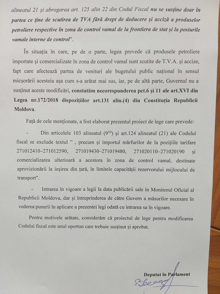 „Precum am anunțat în live-ul făcut cu ceva timp în urmă, astăzi, împreună cu colegii din Blocul ACUM, vom înregistra în Parlament O INIȚIATIVĂ LEGISLATIVĂ CARE PREVEDE ABROGAREA LEGII CARE PERMITE DESCHIDEREA BENZINĂRIILOR DUTY-FREE. Dacă vă aduceți aminte, în vara anului 2018, Partidul Democrat a votat o lege (Legea nr.172/2018 pentru modificarea unor acte legislative - art.XVI pct.6 și pct.11) potrivit căreia, în punctele de trecere a frontierei, se permite vânzarea produselor petroliere - a benzinei și motorinei - care ar fi scutite de plata accizelor și T.V.A. (adică benzinării duty-free). Legea a votat votată ”pe sub masă”, adică în mod netransparent, amendamentul aparținând unui deputat anonim pe nume Vladimir Cernat”, scrie Litvinenco pe pagina sa de Facebook.